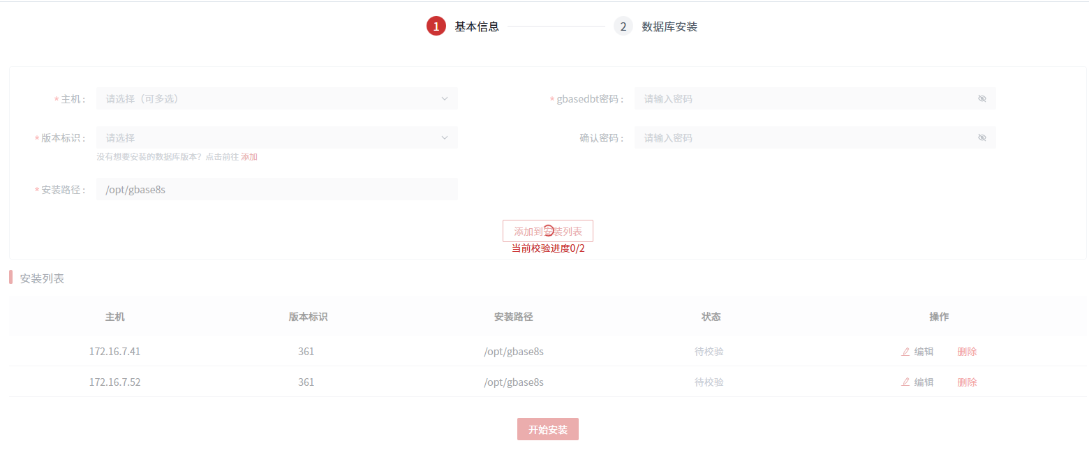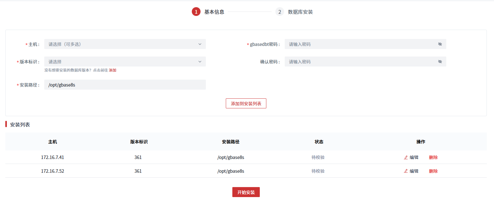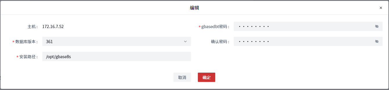 点击安装列表操作栏的【编辑】,可以编辑安装信息,此功能主要服务于批量安装。如果批量安装是为了部署集群,建议安装路径一致。