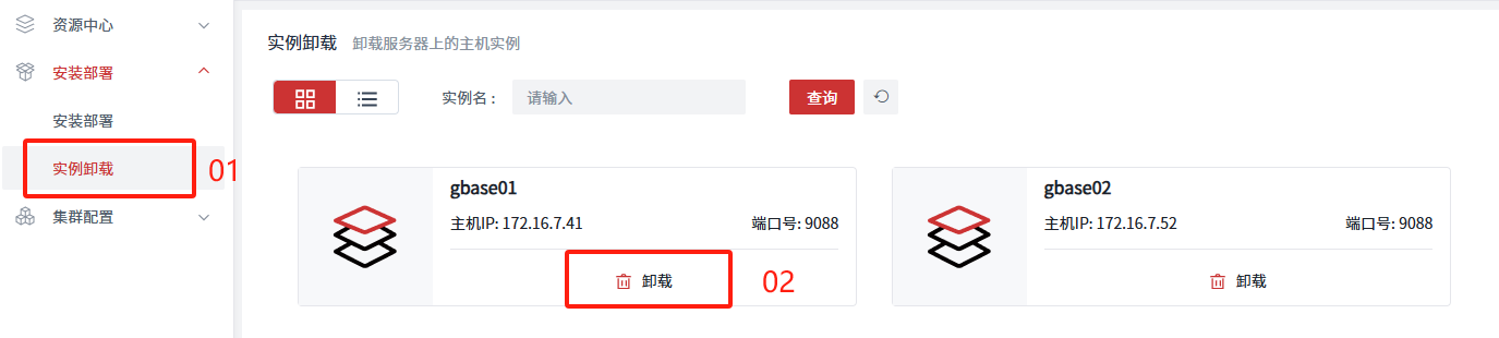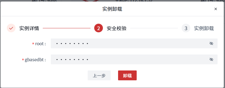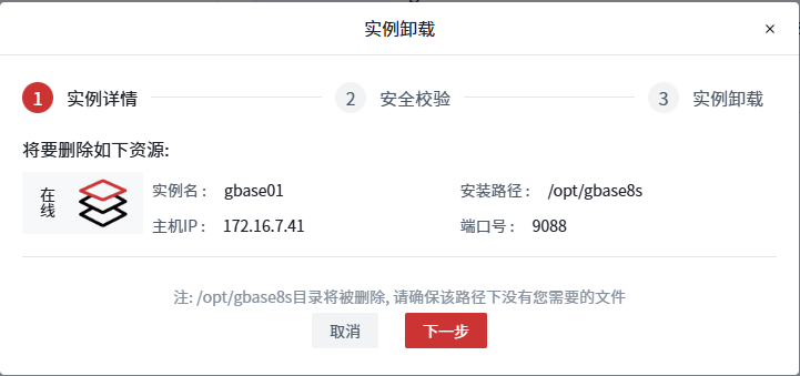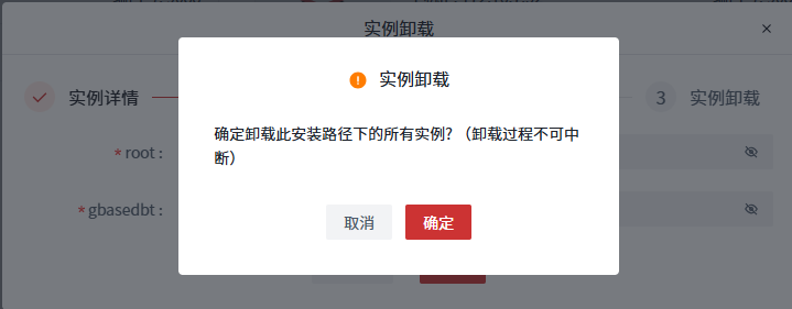 实例卸载功能支持用户从系统中移除数据库软件及其关联服务的进程,确保数据库不再运行并且释放所占用的系统资源,如图所示: