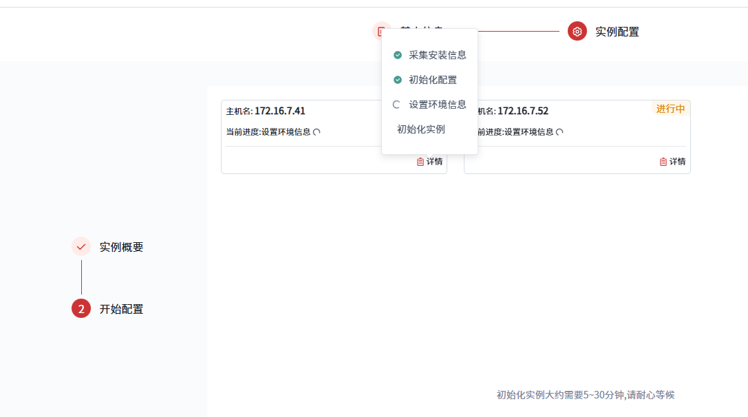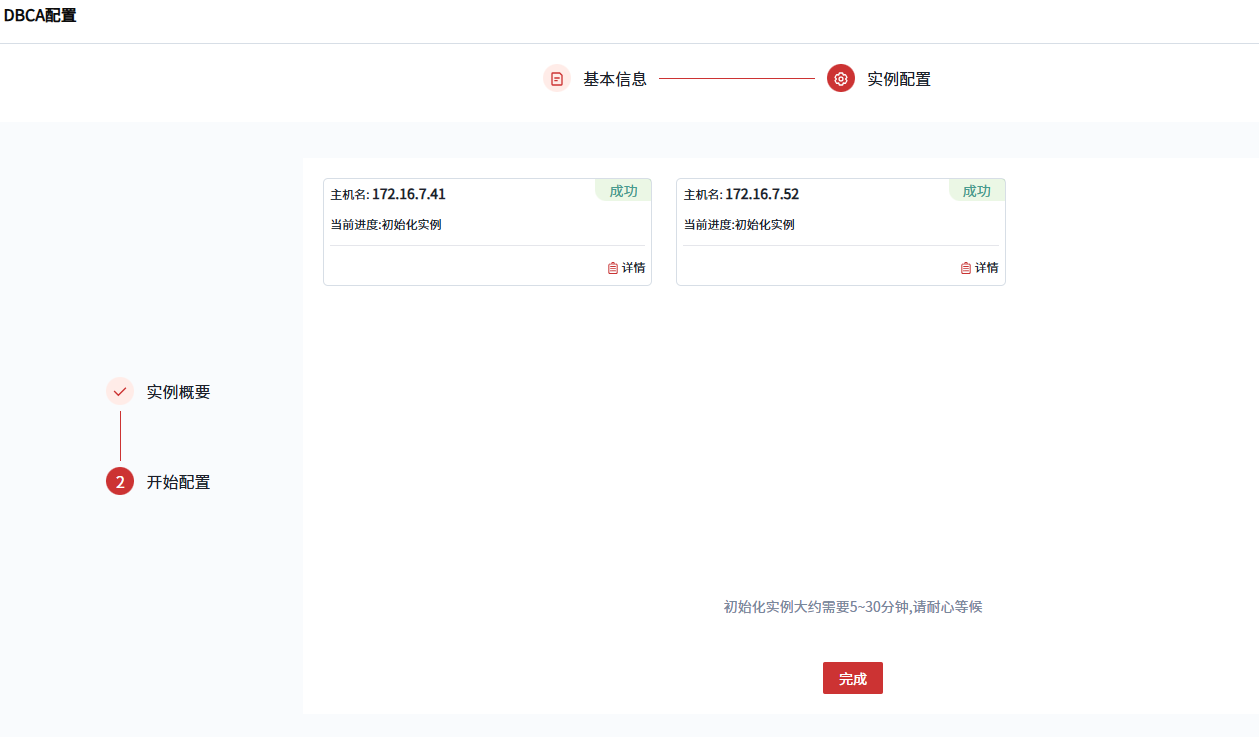点击【开始配置】,启动数据库实例配置操作,此过程需要的时间较长,请耐心等候。