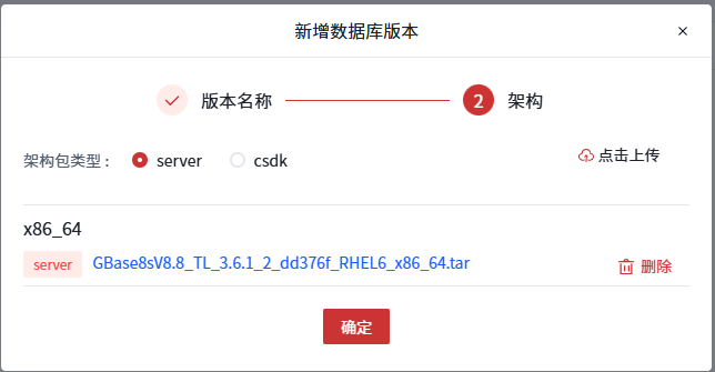 选择安装包类型,是数据库server安装包还是工具包csdk安装包,然后【点击上传】:
