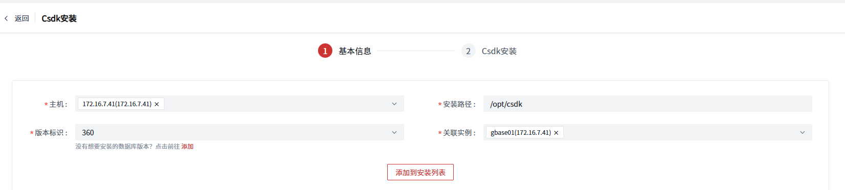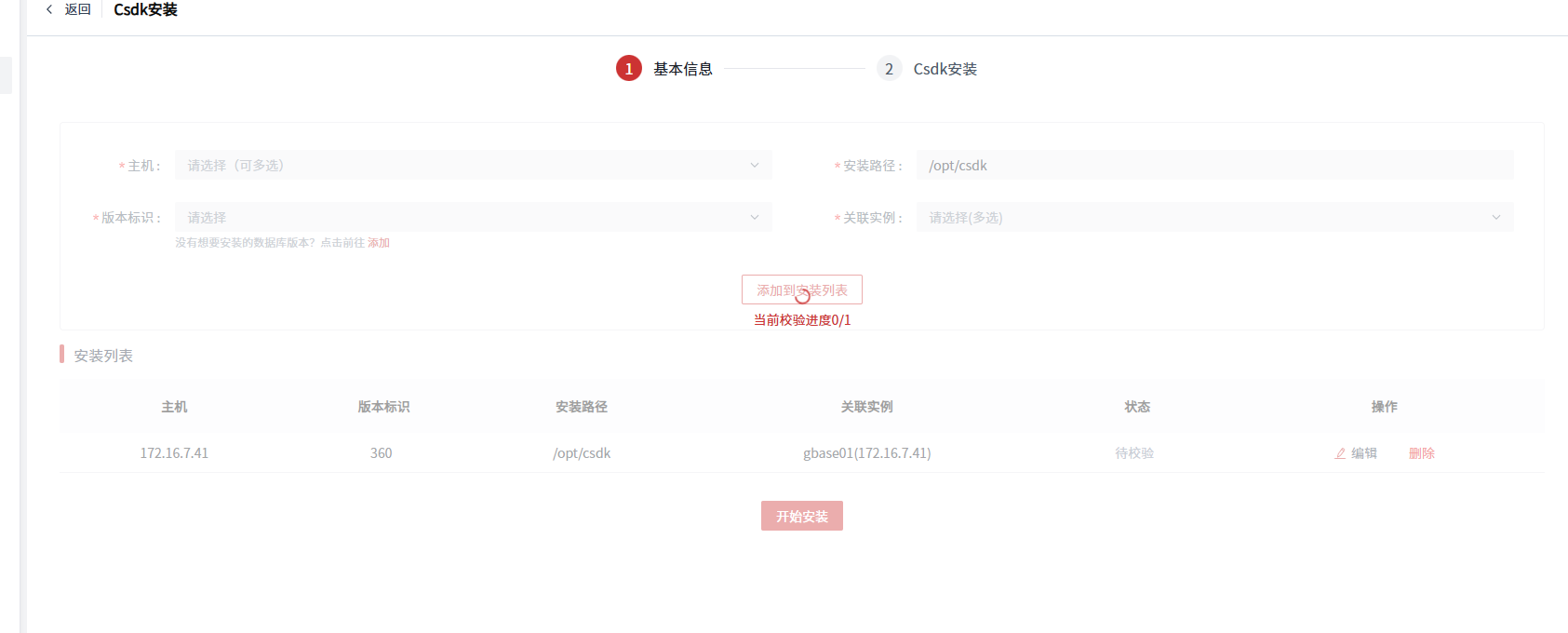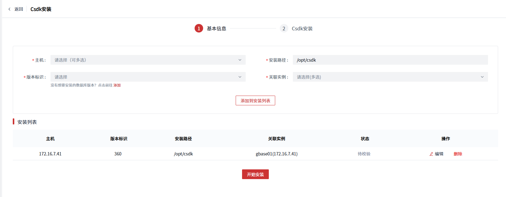 主机 | 在列表中选择需要安装csdk的主机IP,支持多选实现批量安装 |