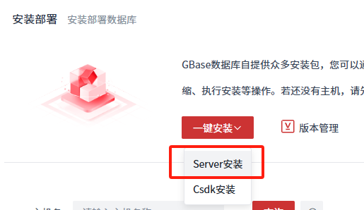 安装部署首页【一键安装】选择【Server安装】按键,执行数据库的安装,如图所示: