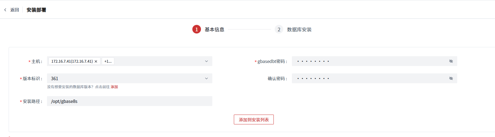 gbasedbt 密码 | 输入gbasedbt用户的密码,如主机服务器上已有gbasedbt用户,则输入正确的密码,如不存在gbasedbt用户,工具会以输入的密码创建新用户:gbasedbt |