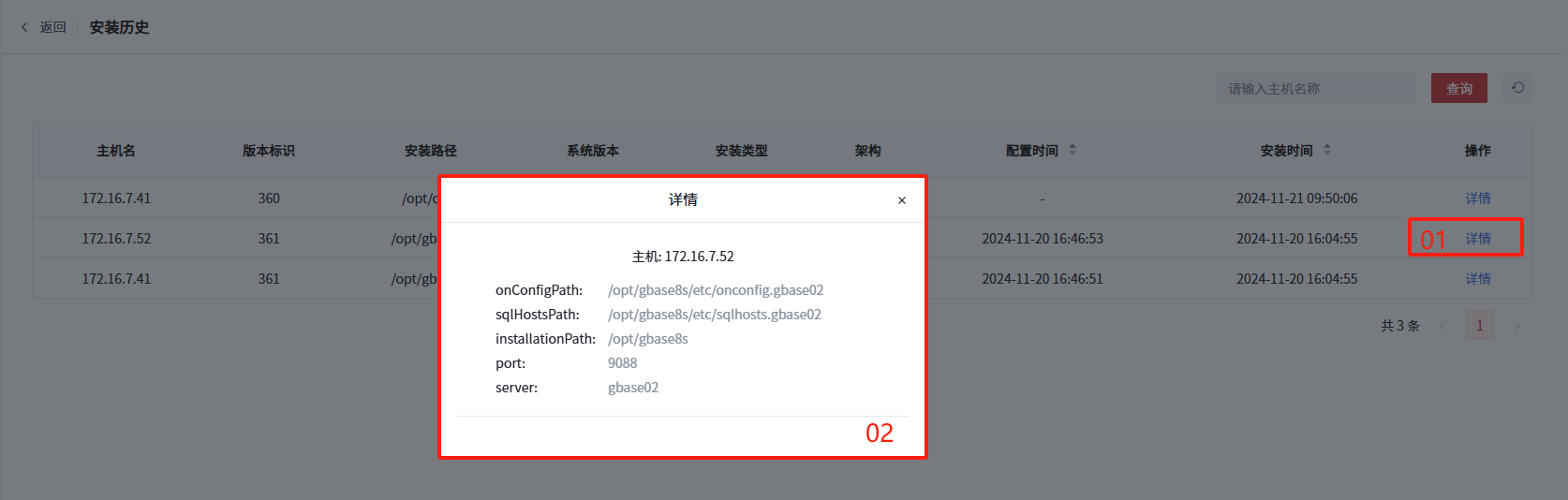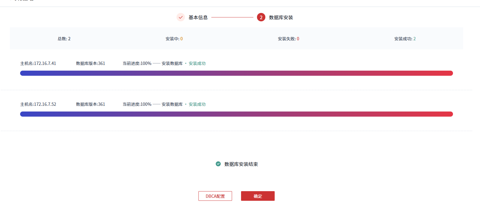 主机 | 在完成数据库安装的列表中选择需要DBCA配置的主机IP,支持多选实现批量配置 |