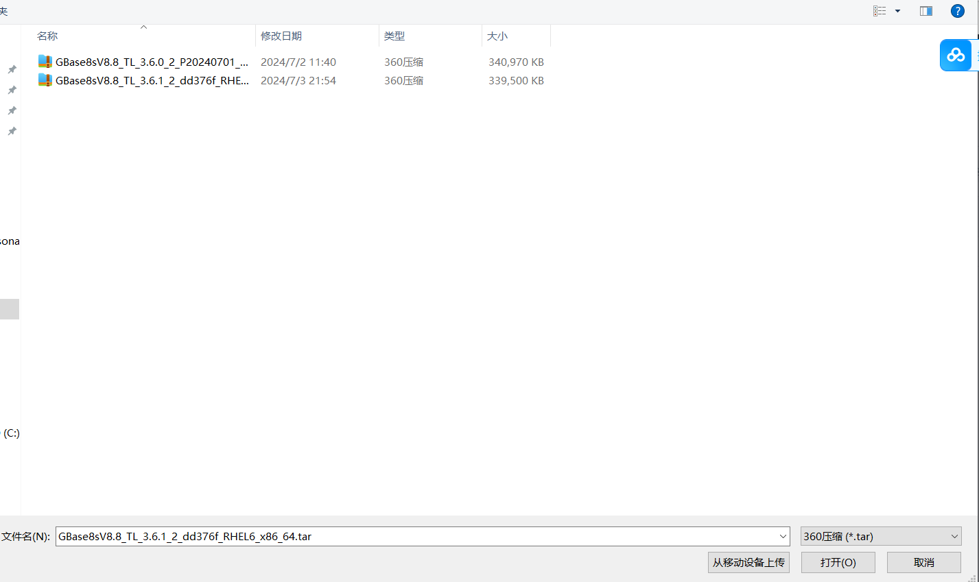 选择对应的安装包,点击【打开】,启动安装包上传: