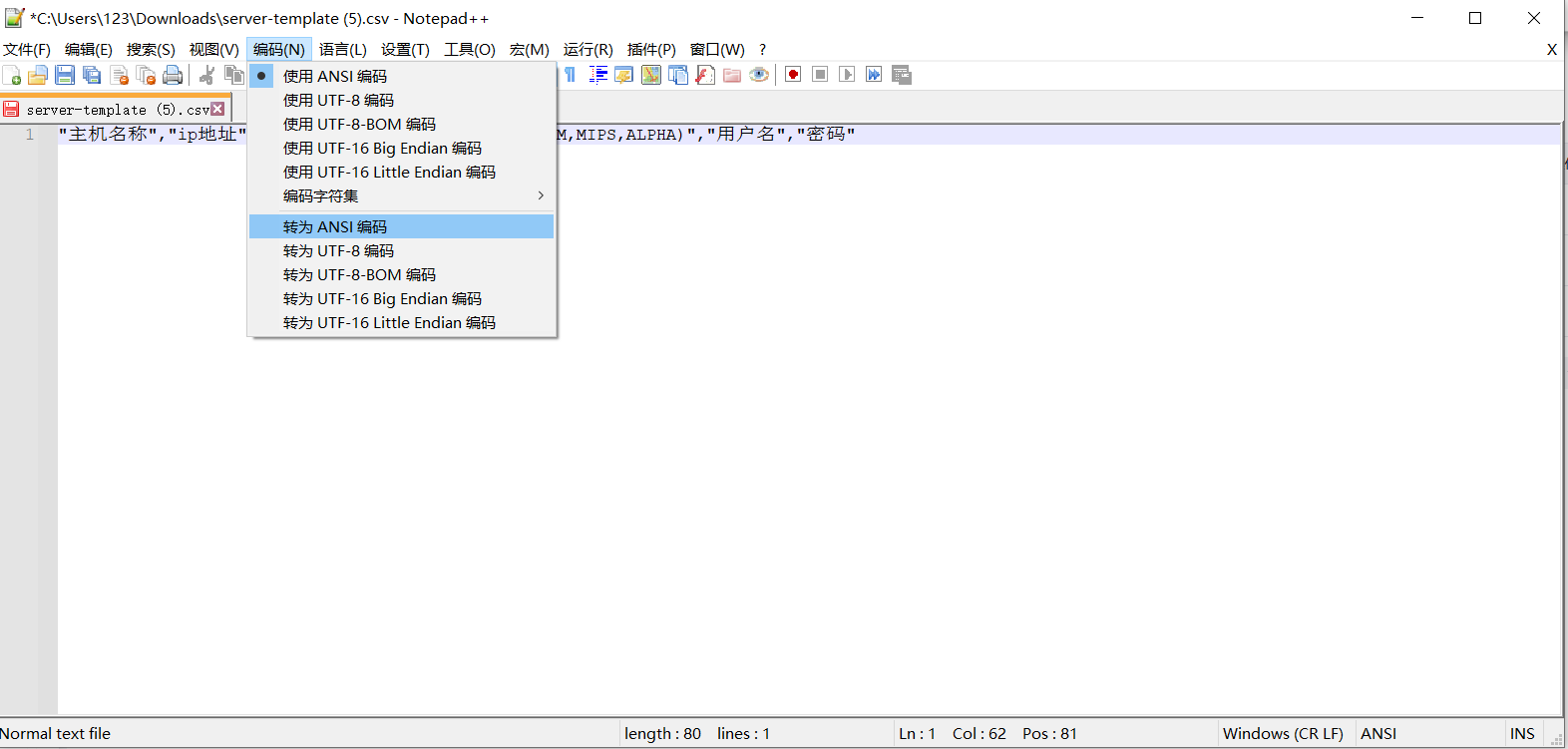 乱码是字符集的原因,通过note打开文件,然后将文件转为 UTF-8 编码。