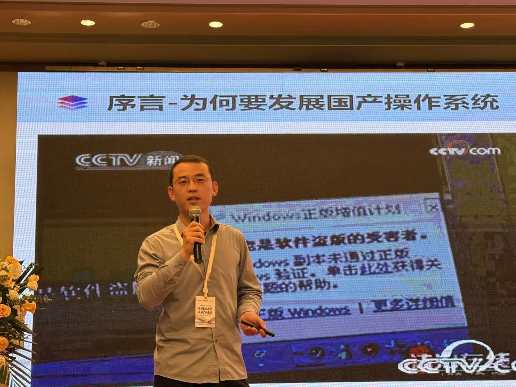 麒麟软件北方售前支持部副经理李道泉带来《创新进化,强基铸魂》主题演讲。