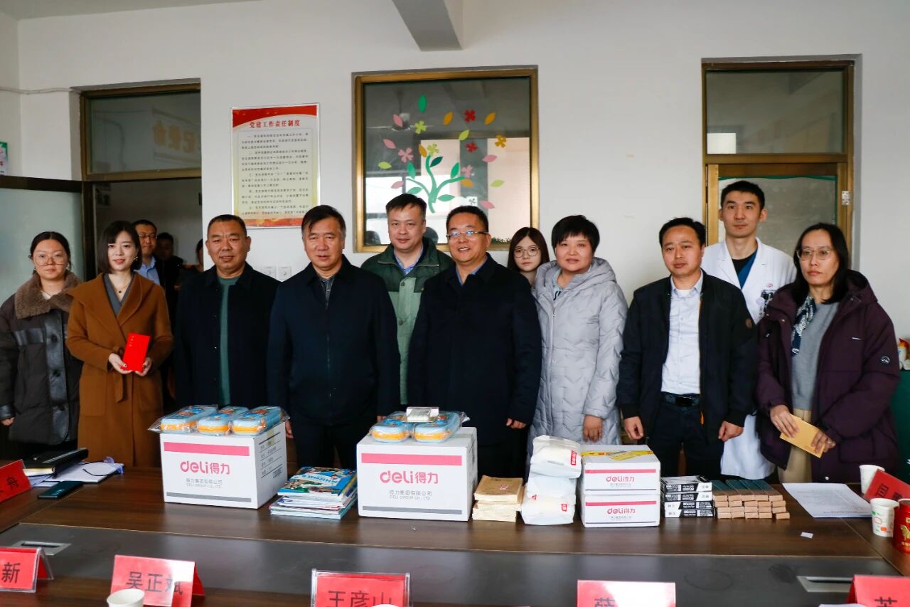 各爱心企业向山咀头希望小学捐赠了办公设备、学习用品等物资。