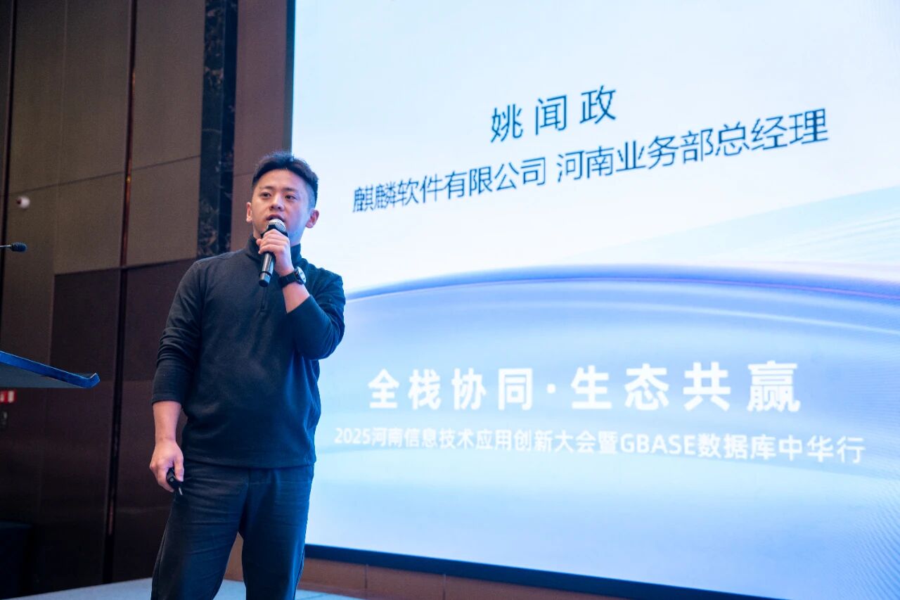 麒麟软件河南业务部总经理 姚闻政现场做《麒心协力,共豫未来》主题演讲。